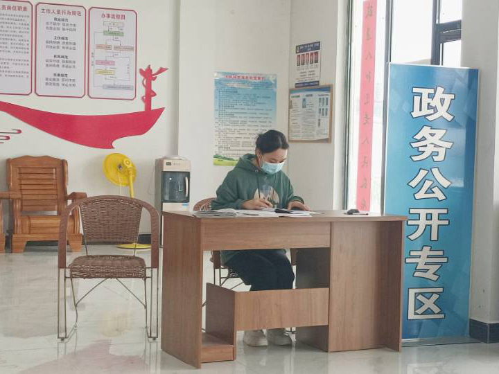 图为赵德榕在广西贵港市平南县大新镇安福村党群服务中心参与基层治理日常工作