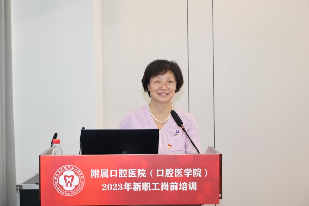 党委书记文琼仙代表医院(学院)向新职工的加入表示热烈的欢迎,她以“学习贯彻习近平新时代中国特色社会主义思想,深刻领会中国式现代化内涵——做一个有温度的医者”为主题,为新职工讲授了一堂生动的思想政治教育课,向新职工介绍医院发展历程,分享自己的学习、工作经历,勉励新职工一是要常怀理想之心,坚定理想信念,深入学习贯彻习近平新时代中国特色社会主义思想,深刻领悟党的创新理论最新成果,让真理武装头脑,让真理指引理想,让真理坚定信仰,保持对远大理想和奋斗目标的清醒认知和执着追求;二是常怀责任之心,始终坚守向下扎根的韧劲心劲,始终保持向上生长的劲头势头,立足于岗位做贡献,不断提升医疗水平,提高医疗服务能力,为患者、职工思考,做一个有温度的医者;三是常怀敬畏之心,正确对待“小岗位”“微权力”,加强自身建设,廉洁从业,珍惜自己的荣誉塑好自己的形象,努力做好医院建设和发展的传承者和接班人。