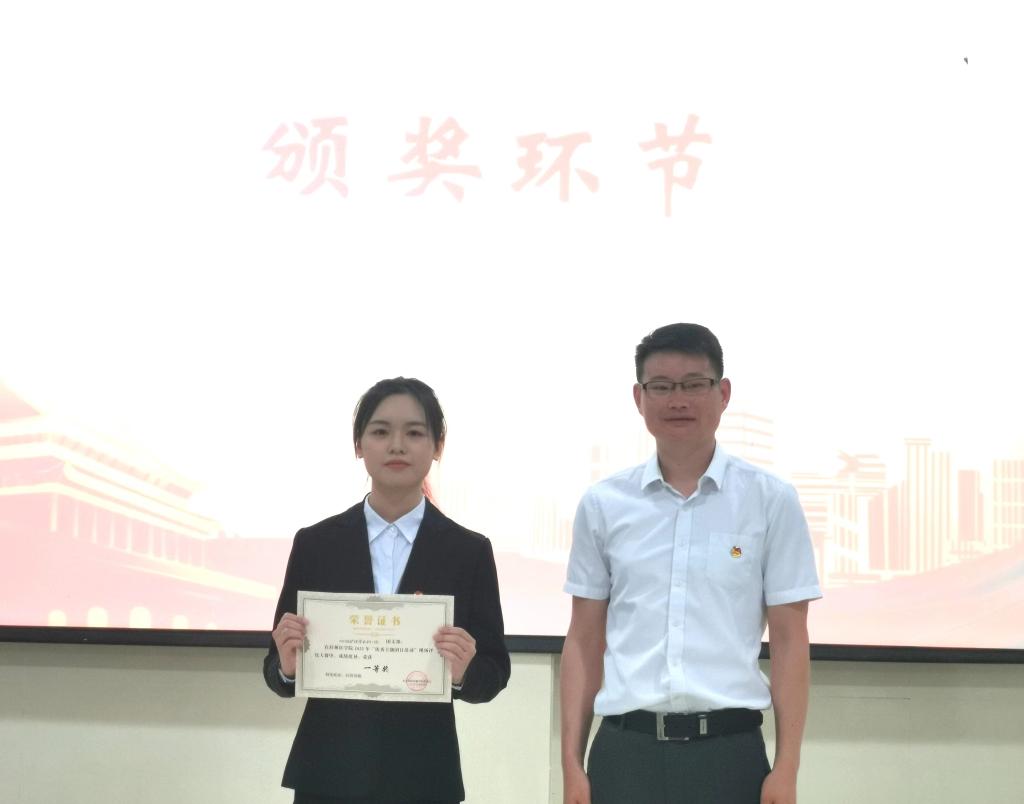校团委副书记高进涛为获得一等奖的团支部颁奖