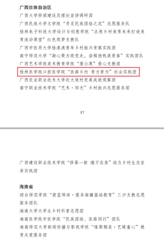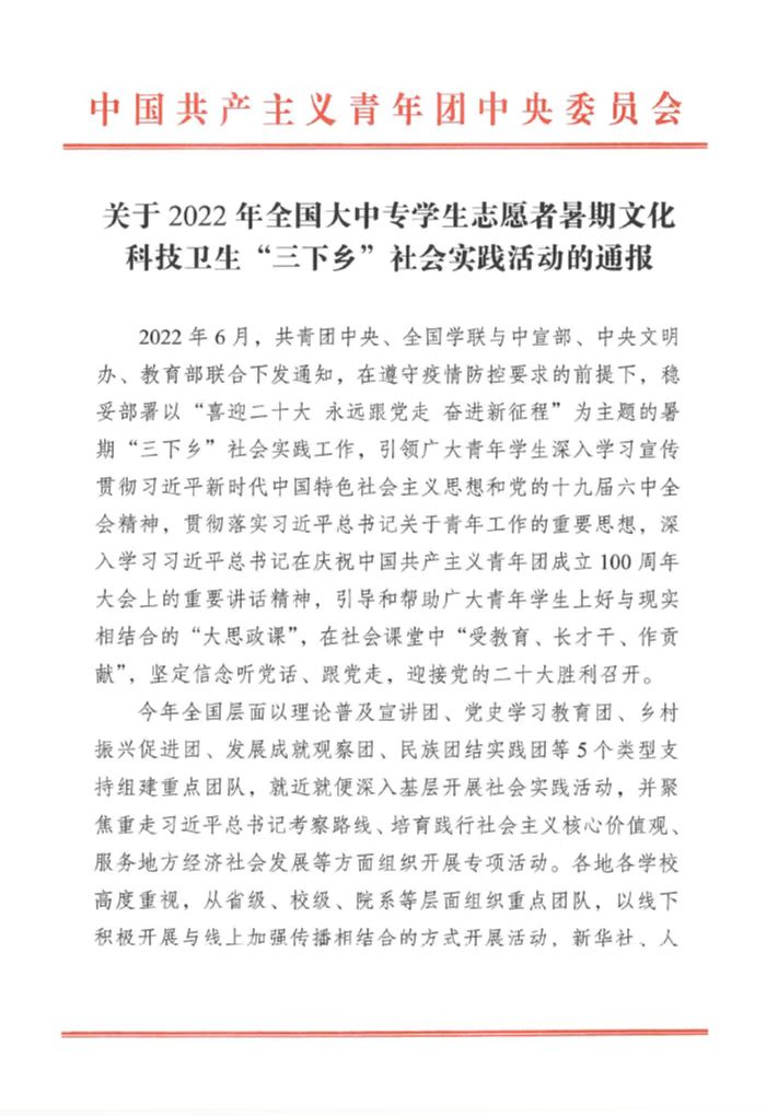 近日,团中央公布了2022年全国大中专学生志愿者暑期“三下乡”社会实践活动总结通报结果,beat365唯一官网口腔医学院“医路乡约·青力青为”服务团经过学院申报、学校遴选、团区委专家评审、团中央组织评议等环节层层选拔,最终脱颖而出,荣获全国“优秀实践团队”,全国共379个团队获此殊荣。